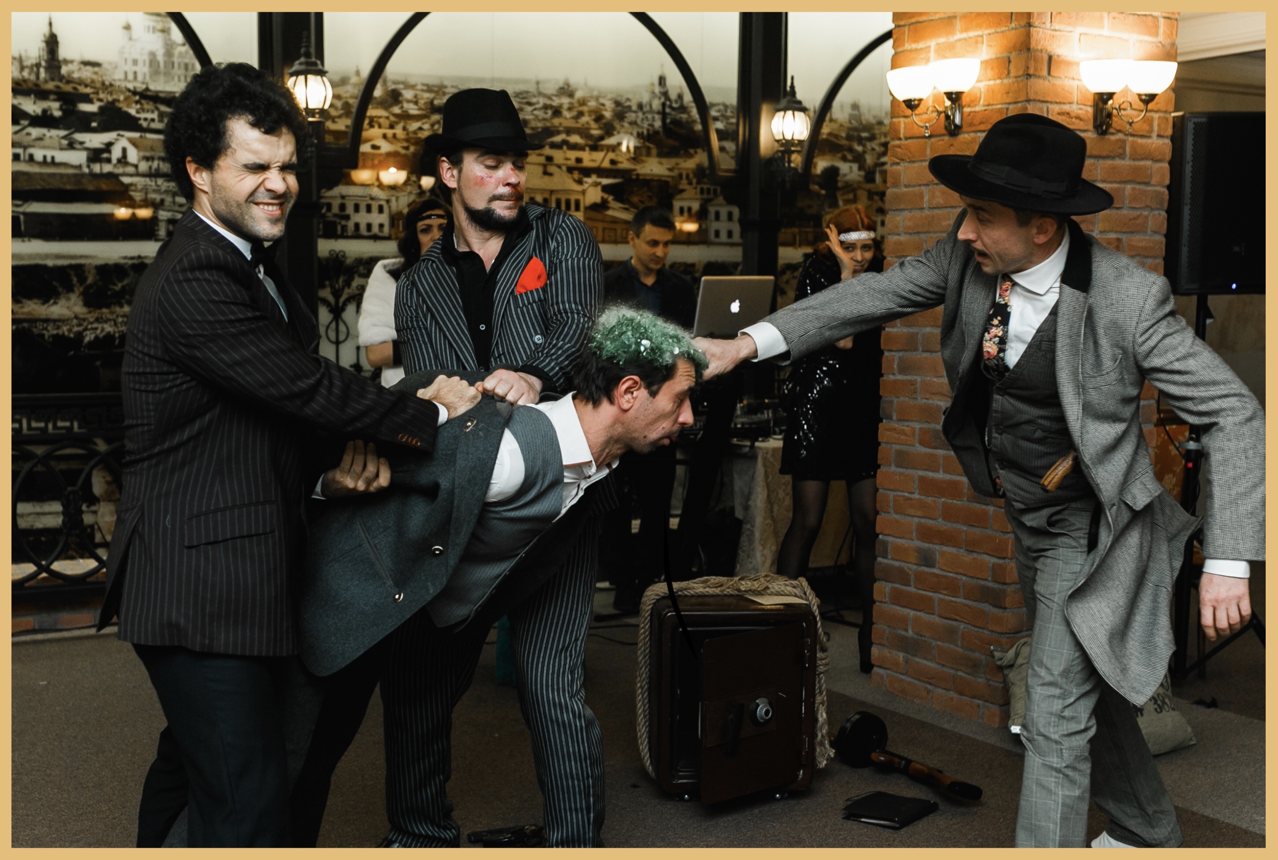 Онемевшие гости приходят в себя и рассматривают гангстеров в строгих костюмах с иголочки. Считываю в их взглядах вопрос: «что будет дальше?»