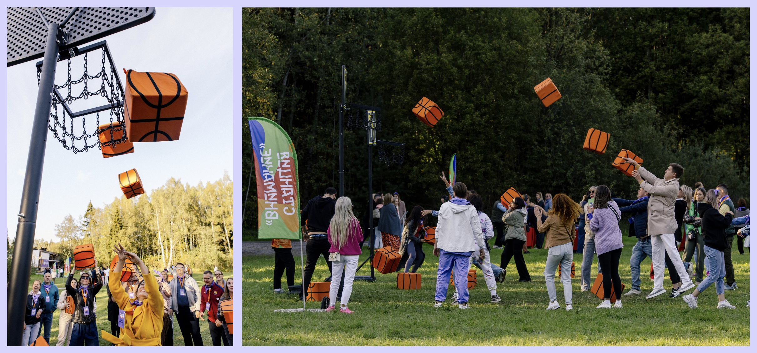Это задание обязательно для разминки и разогрева. Если в команде не все знакомы, зажаты или просто выгорели, то кидание кубических мячей в квадратные кольца — идеальный совместный опыт для знакомства и отдыха. Здесь я как капитан команды не стал бы давить на команду и требовать победы (набрать определённое количество очков). Я был бы доволен азарту в глазах игроков и общему веселью. Тут действительно главное — не победа, а участие.