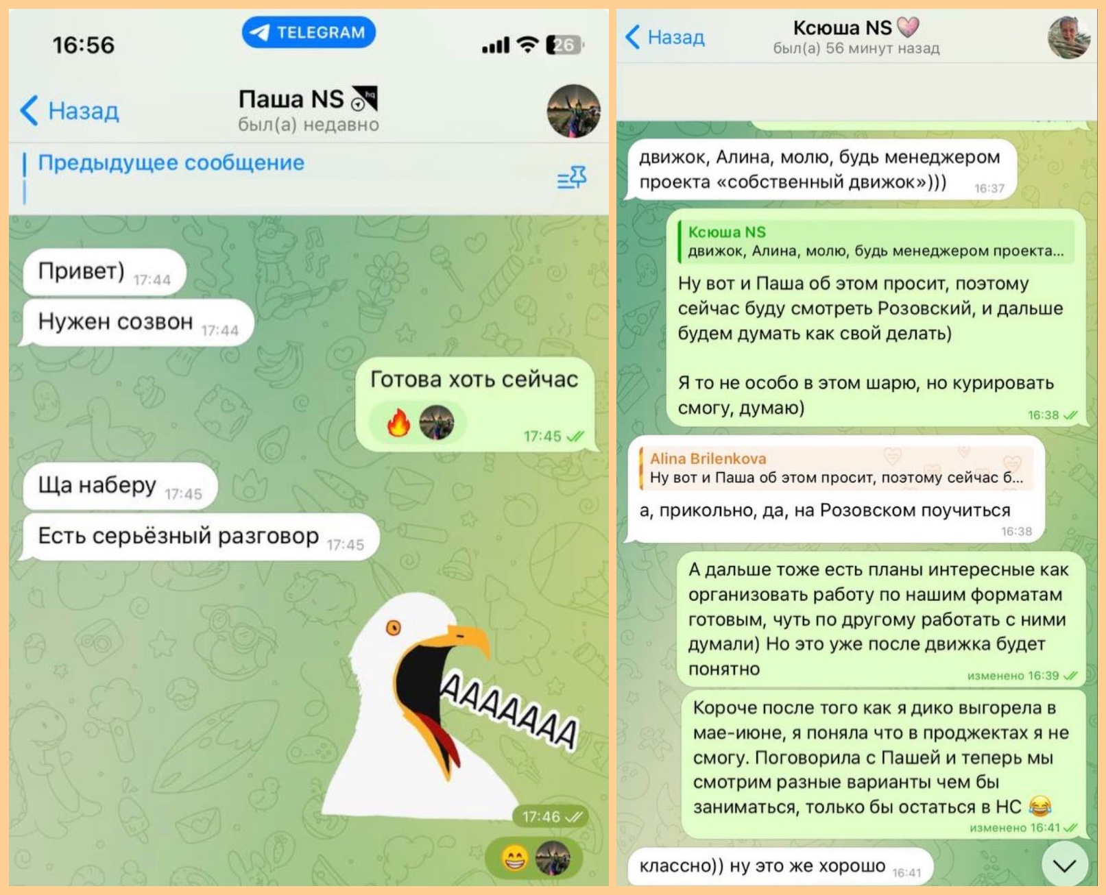 Яркий пример — Алина Бриленкова, наш талантливый проджект-менеджер. Она приняла непростое решение уйти, выбрав заботу о себе. И как же мы рады, что её история в NIGHT STREET на этом не закончилась! Именно Алина стала человеком, который лидировал проект по созданию собственной онлайн-платформы, а сейчас является руководителем целого онлайн-направления.