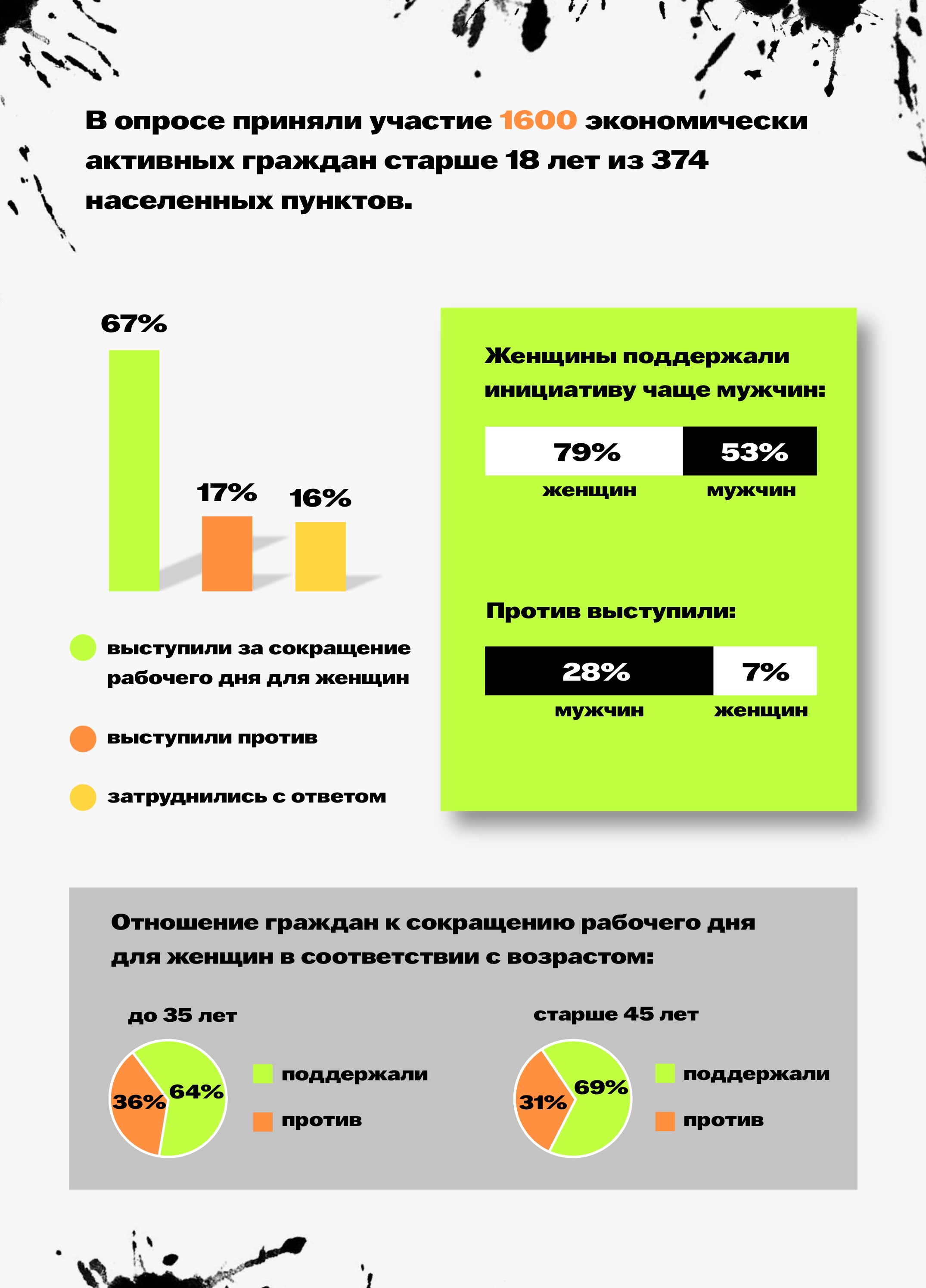 Идею сокращения на один час рабочего дня для женщин при сохранении зарплаты поддержало большинство россиян. Как сообщает исследовательский центр SuperJob, соответствующий опрос среди трудоспособного населения проводился с апреля по май 2025 года во всех округах страны. Поводом стала инициатива депутата Госдумы Игоря Антропенко, который предложил дать женщинам дополнительное время для семьи.