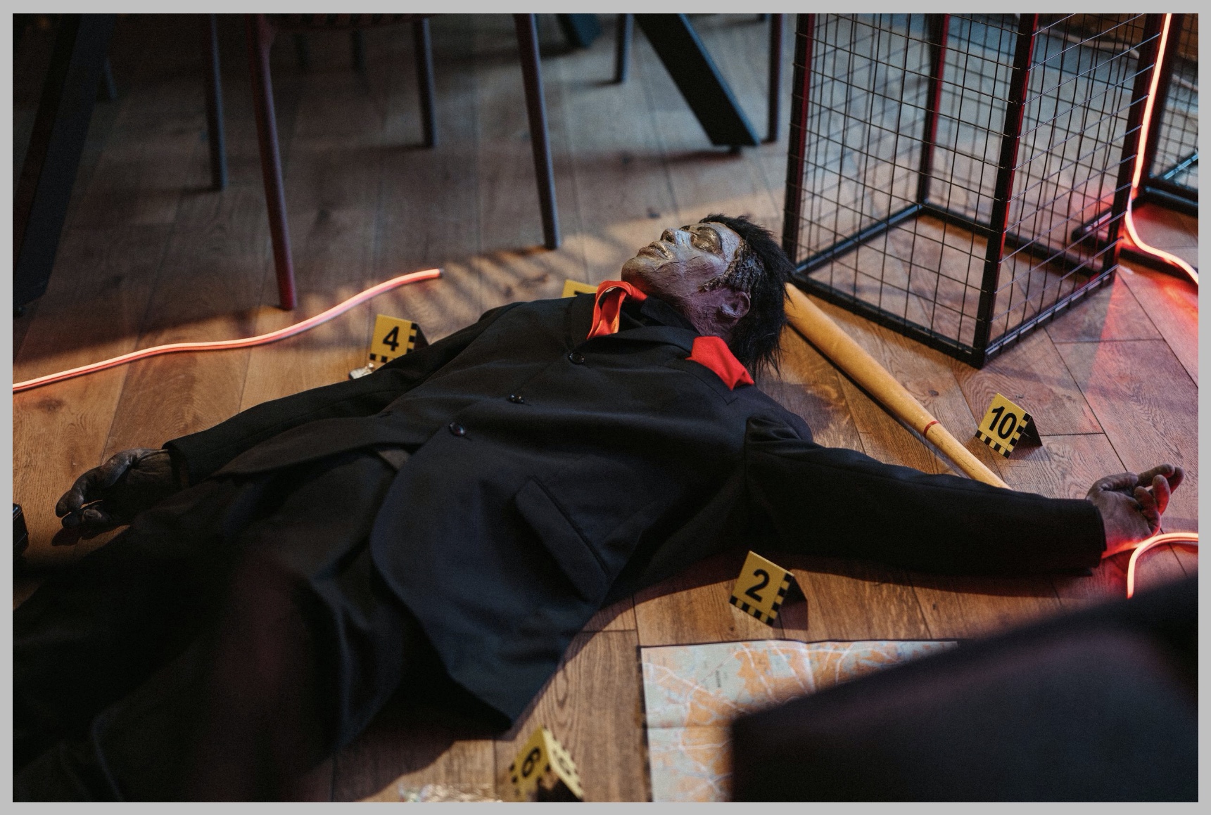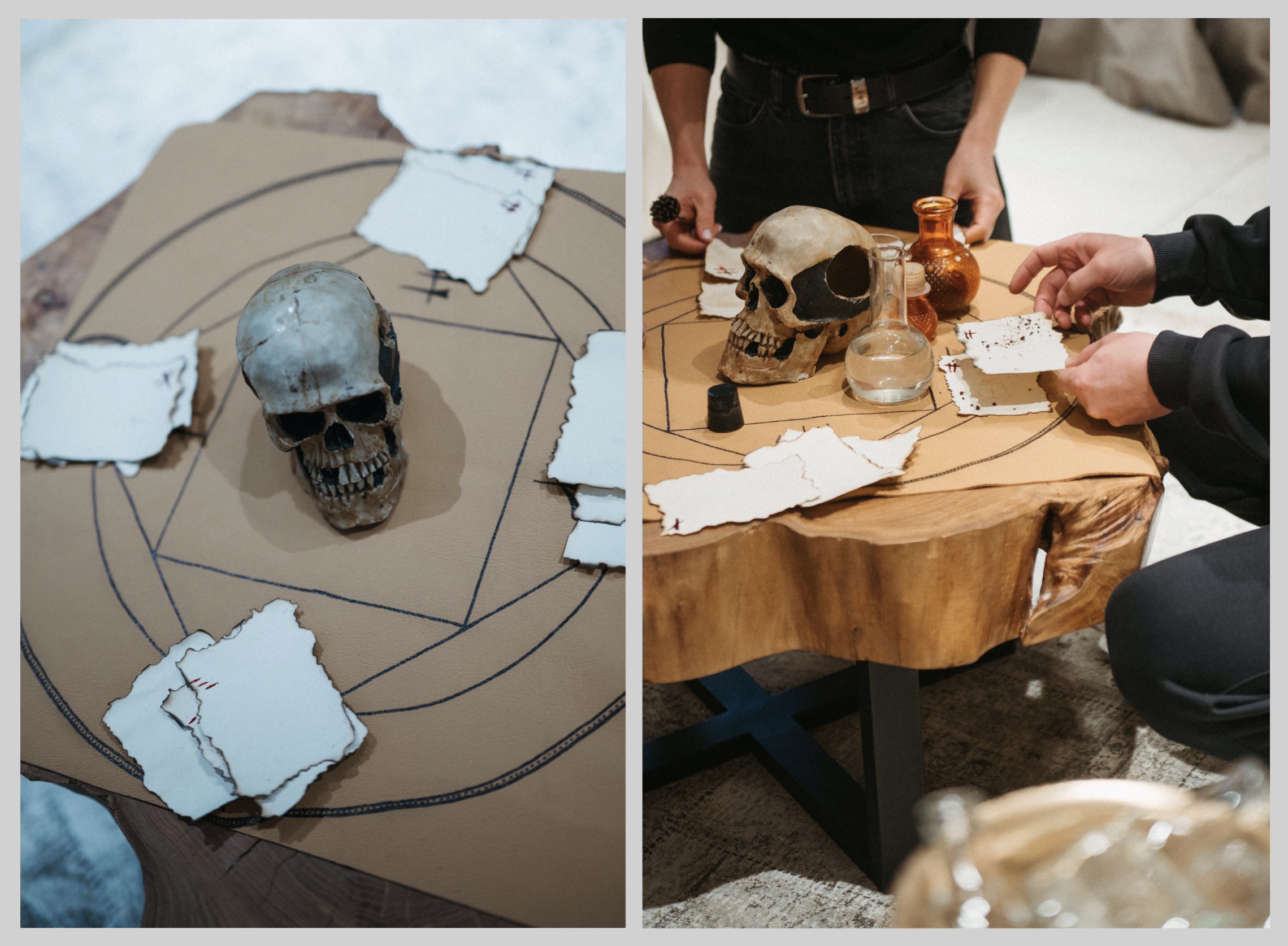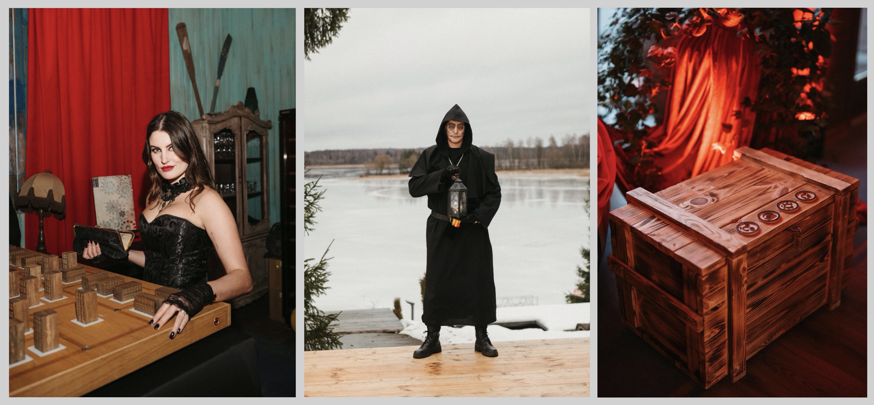 Для квеста мы выбрали большой загородный клуб на берегу Истринского водохранилища, окружённый лесом. Все локации этого камерного места были вписаны в сюжет — даже домики гостей. Пока они были на завтраке, наша квест-команда и декораторы незаметно устанавливали внутри домиков задания, артефакты и улики. Участники возвращались — и привычное пространство превращалось в сцену расследования.