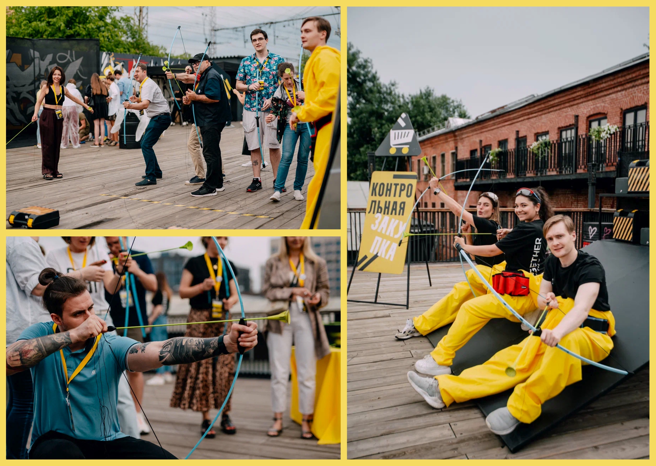 На другом задании испытатели стреляли из лука (не в KPI, а в коробки), добывая «запасы» для своей команды.