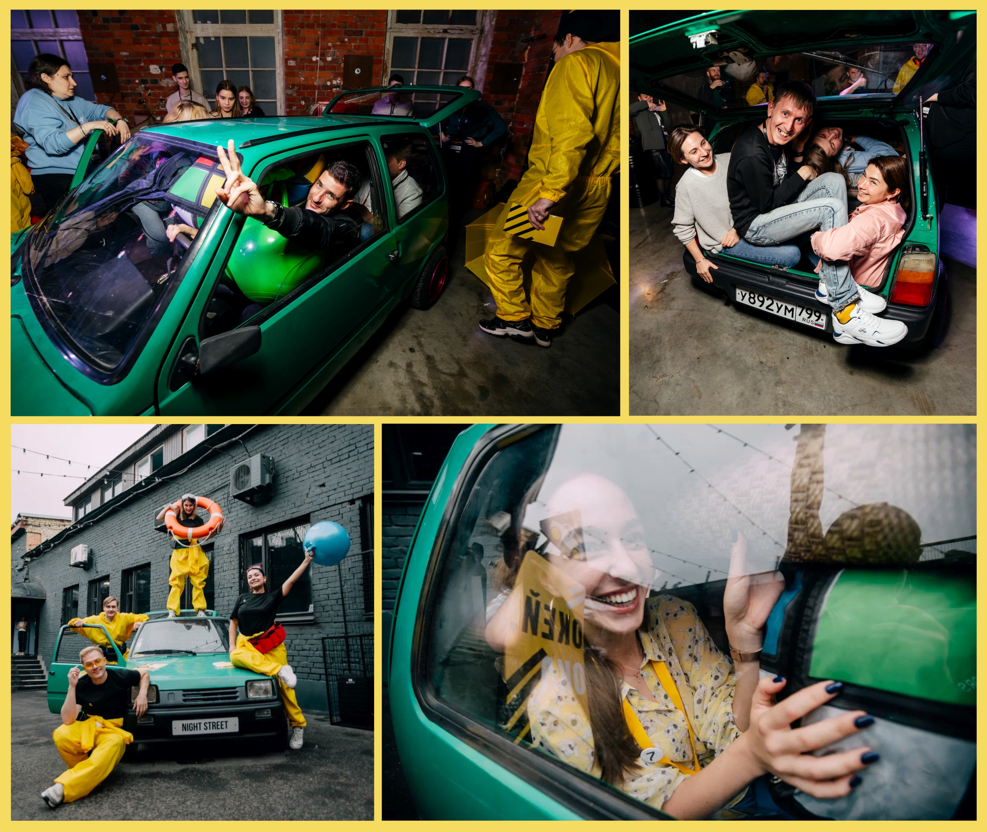 И одно из самых весёлых и неожиданных испытаний — запихнуть 10 взрослых людей в автомобиль «Ока» (настоящий).